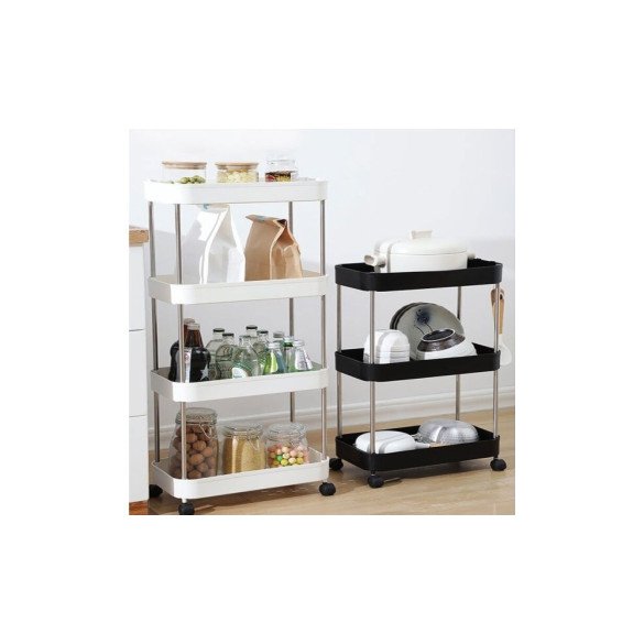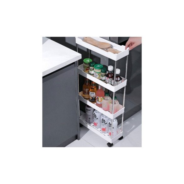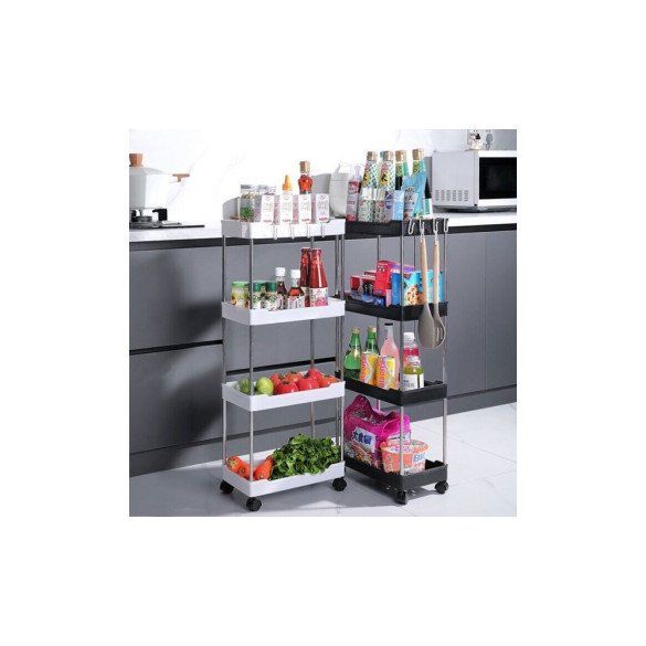 • 와이드형 바퀴 수납장 틈새 공략 이동식 트롤리 정리함 간이 후크 욕실 주방 가정(3단/4단)