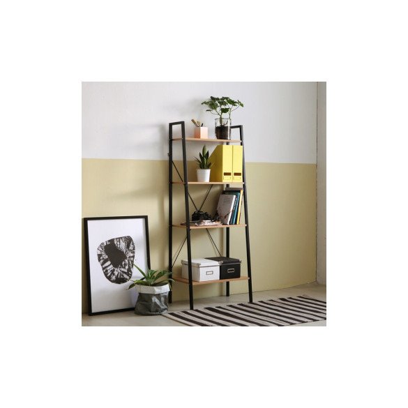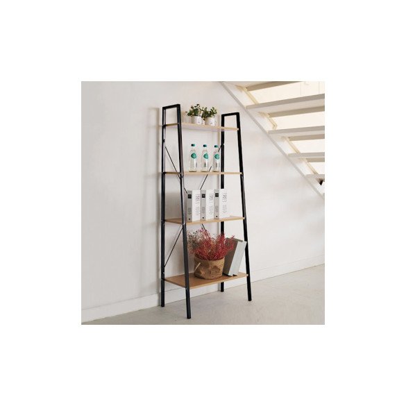 • 우드선반 계단식 4단 블랙 철제 사다리 진열대 수납