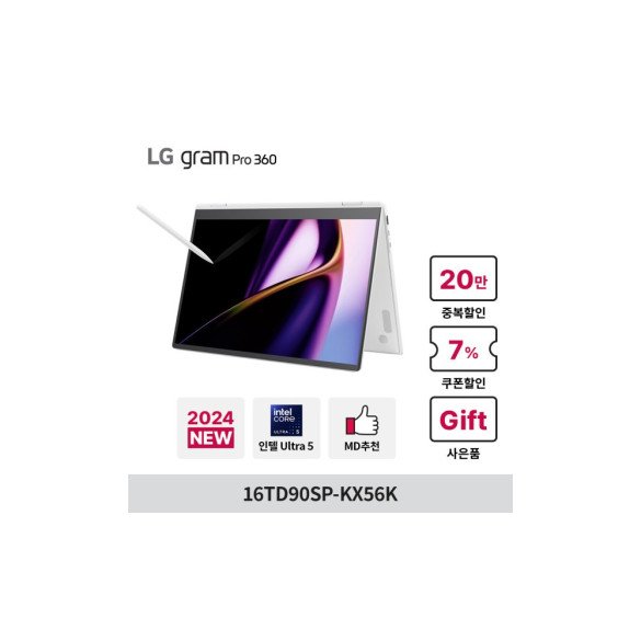 LG그램 프로360 16TD90SP-KX56K 179만구매 인텔Ultra5 램16GB NVMe256GB 120HZ OLED 태블릿PC 터치 노트북 요약정보 및 구매